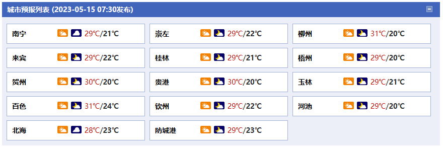 廣西氣象臺(tái)15日05時(shí)發(fā)布預(yù)報(bào):