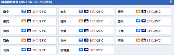 廣西各城市天氣預(yù)報(bào)。(來源:中國天氣網(wǎng))