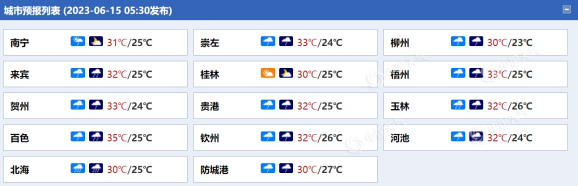 廣西各城市天氣預(yù)報(bào)。(來源:中國天氣網(wǎng))