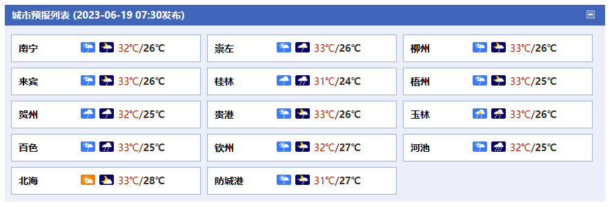 廣西氣象臺(tái)19日05時(shí)發(fā)布預(yù)報(bào):