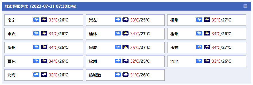 廣西氣象臺(tái)31日05時(shí)發(fā)布預(yù)報(bào):