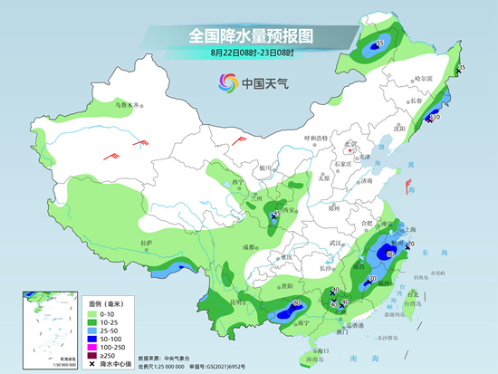 中東部大范圍降雨天氣過程仍在繼續(xù)!今天(8月22日),強(qiáng)降雨落區(qū)進(jìn)一步南壓,云南到江南東部一帶雨水明顯增多,其中浙江、廣西等地部分地區(qū)或現(xiàn)大到暴雨,需注意防范。此外,中東部地區(qū)由于未來兩天雨水較多,高溫天氣整體呈現(xiàn)縮減趨勢,但南方地區(qū)由于濕度較高,悶熱天氣還將繼續(xù)控場。