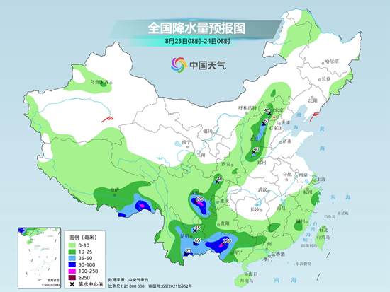 總體來看,8月下旬,我國的降雨主要集中在西南地區(qū)、西北地區(qū)東部、黃淮西部、江漢、江南、華南西部等地,上述地區(qū)降雨日數(shù)普遍可達(dá)6至8天。尤其需要注意的是,25日至28日,黃河和長江之間將迎強(qiáng)降雨過程,陜西南部、四川北部、湖北西部一帶的降雨可能具有一定極端性,公眾需關(guān)注臨近預(yù)報(bào),及時(shí)做好相關(guān)防范工作。