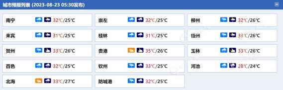 廣西各城市預(yù)報(bào)。(來源:中國天氣網(wǎng))